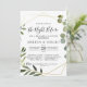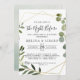 Este janto de ensaio de eucalipto verde geométrico é perfeito para uma comemoração do ensaio de casamento. O design apresenta uma imagem geométrica dourada que enfeita folhas verdes de eucalipto.