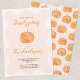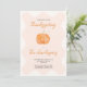 Celebrar Ação de Graças com amigos e família com este design exclusivo do outono, com o moderno script de letra minúscula e uma abóbora de aquarela em um quadro cor-de-rosa ondulado e branco. O reverso apresenta um padrão de abóbora correspondente. Você pode personalizar facilmente o convite a seu gosto alterando o texto. Arte original de Nic Squirrell.