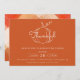 Celebrar Ação de Graças com seus entes queridos com este convite moderno e elegante. O convite contém uma abóbora com a palavra "Obrigado", definida em um fundo laranja queimado no outono. A maneira perfeita de convidar seus convidados para uma noite memorável de comida, diversão e palhaçada.