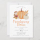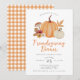 Convide seus amigos e entes queridos para um janto de amizade este Dia de Ação de Graças com este moderno convite elegante que inclui abóbora aquarela, floral de outono e cogumelo.
