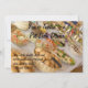 Uma mesa repleta de quantidades generosas de pão, salada, carne e sobremesas é o pano de fundo deste convite à sorte para o pote.