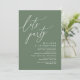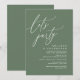 Marque o começo de sua eternidade com elegância usando nosso romântico sábio, contemporâneo, tema verde do casamento elopemento feliz para sempre, depois de um brunch almoço jantar festa convite para comemoração, "Vamos Party". Perfeito para os casais estendendo sua alegre ocasião, este convite exude sofisticação com uma sugestão de brincadeira, definindo o palco para um evento memorável. Adorado com um tema design de roteiro moderno de eterno, ele adiciona um toque de encanto refinado às suas festividades, este convite promete capturar lindamente sua história de amor.