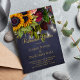 O ensaio de casamento elegante na Rússia janta na moda a convite modelo na meia-noite escura marinho fundo de quadro azul com grandes girassóis dourados e rosas vermelho-burgundy, cordas de luzes brancas cintilantes e um roteiro clássico de tipografia dourada. +++++++++++++++++ Fácil de personalizar com seus detalhes! Você pode personalizá-lo alterando ainda mais as fontes e as cores das letras. +++++++++++ O convite é adequado para o inverno, o Natal, o Verão tardio ou o outono caem ao ar livre / noivado de quintal rústico de quintal, ensaio de casamento, festas de casal ou churrascos.