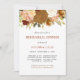 Um belo convite de janto rústico para ensaio, que apresenta uma fina borda floral superior de rosas de cor d'água em tons de paprika, laranja, burgundy, castanho, ouro, rosa, pêssego, ferrugem, marfim e creme. O texto está em fontes ruidosas e negras, e o lado inverso é uma sombra de ferrugem correspondente. Ideal para uma queda ou casamento no inverno.