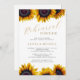 O convite para jantar os girassóis modernos de boho-chic com um roteiro de caligrafia de moda de ouro. ++++ Adequado para o verão ou outono, quintal de quintal rústico de jardim rural romântico antes das festas de casamento.