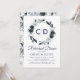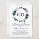 O ensaio de casamento elegante janta convites com um fundo branco-chic que pode ser mudado para qualquer cor, um design branco azul-marinho azul-maria, as iniciais dos casais e um modelo de texto moderno que é fácil de personalizar.