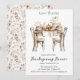Belamente ilustrado convite para janta de Ação de Graças. Apresenta uma elegante definição de mesa de aquarela pintada à mão com pratos, talheres, óculos, abóboras, pinecones e arranjos florais de outono em vasos. A paleta de cores é quente e neutra com laranjas moles, castanhos e tons beges, criando uma atmosfera de queda confortável e festiva. O texto convida convidados para um Janto de Ação de Graças com detalhes do evento (data, hora, local e RSVP). DESIGN DE © Você pode personalizar com seus nomes e texto. Você pode alterar a cor do texto e o estilo da fonte usando a opção personalizá-lo. NOTA: as cores exibidas on-line podem variar ligeiramente do produto real.