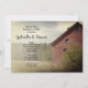 Convide convidados para uma festa pré-casamento honrando a noiva e o noivo com o encantador convite do Janto de Ensaio de Casamento Russo do Barno Vermelho. Este janto informal personalizado de ensaio de rancho apresenta uma fotografia cênica de fazenda de um velho celeiro vermelho de madeira com intempéries, com árvores verdes altas no fundo.