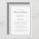 Simples e chic cinza e branco o convite para janto de ensaio de casamento design apresenta um simples design minimalista contemporâneo com uma dupla fronteira em cinza suprema em um fundo branco nítido. Personalize a design de casamento com seus detalhes em letras de tendências e roteiro em cinzas. As costas combinam em cinzas sólidas. Para obter melhores resultados, substitua os detalhes do modelo com seus próprios detalhes, deixando espaço entre os parágrafos como no exemplo e use todas as letras minúsculas quando especificado. Envie um email para invitationsuites@gmail.com com perguntas ou solicitações personalizadas.