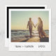 Simples e divertido janta convites que imitam o aspecto de uma foto retrô instantânea. A frente tem seus nomes e data em uma fonte de letra de escrita manual e a parte traseira tem seus detalhes de evento. A imagem tem um filtro sobre ele para lhe dar uma aparência antiga (o filtro pode ser alterado ou removido clicando no botão personalizar). Este design legal e moderno é excelente para o casal minimalista ter uma celebração casual.
