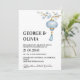 The soft blue tones create a calm and sophisticated atmosphere, while the cherry blossom details add a graceful touch of romance and seasonal beauty. The clean layout and balanced composition ensure excellent readability, making this invitation perfect for couples seeking understated elegance.
