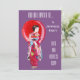convites de festas adequados para um tema japonês feito em uma festa japonesa. De uma pintura original do artista Sacha Grossel, de uma Geisha japonesa vestida de carregando tradicional, um guarda-chuva e vestida com um quimono vermelho e rosa. Esta ilustração de estilo artístico asiático giro é colorida e a cor e o texto de fundo podem ser alterados de acordo com o seu gosto pessoal.