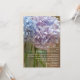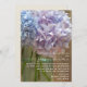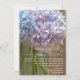 Um convite de casamento rústico com uma foto de um jarro de pedras de híbridos roxos claros e azuis sobre um fundo de madeira. Personalize o texto com detalhes da sua ocasião. A redação é da noiva e do noivo.