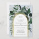 O casamento do Jardim Botânico Moderno Greenery Convidou na paleta de cor do casamento de Dusty Blue. Este elegante convite de casamento é uma escolha perfeita para primavera de jardim ou casamento de verão. Características pintadas de folhas botânicas de aquarelas com quadros arqueados modernos e iniciais da noiva e do noivo. Faça com que este casamento do Jardim convide um na moda e um convite único que certamente dá primeira impressão à família e aos amigos.