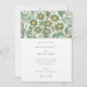 Este convite para o casamento é uma bela homenagem aos intrincados e inspirados na natureza padrões de William Morris. Ele apresenta um design floral exuberante com um conjunto de tons verdes e verdes, acentuados com amarelos quentes e castanhos ricos. O motif botânico apresenta uma elegante mistura de flores e folhas que evoca um sentido de beleza eterno, perfeito para um tema clássico de casamento. A elegância refinada do design é acompanhada por um pano de fundo branco e limpo, onde os detalhes do convite são apresentados em um tipo clássico. Este convite capta a essência romântica de um jardim em floração de cheio e se adaptaria a qualquer casal que buscasse trazer um toque de sofisticação de safra para o dia do seu casamento.