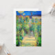 Cartão com a pintura a óleo de Claude Monet O Jardim do Artista em Vétheuil (1880). Os girassóis e outras lindas flores azuis e vermelhas fazem um percurso no jardim onde as crianças estão dando um passeio agradável. Um presente de excelente para fãs do impressionismo e da arte francesa.