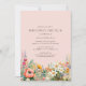 Convites bonito e simplistas de brunch de aniversário com ilustrações florais de aquarela. Cor rosa pálido pincelada na frente com um rosa mais vibrante e contrastante no verso.