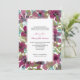 Flores aquarelas em cores de Cabernet Purple, Olive Green e Light Ocean Teal enquadram este romântico convite ao casamento. Um fino caimento branco em volta da área de texto branco para uma aparência cônica. Para obter informações sobre alterações de design personalizadas pelo designer independente, envie um email para paula@labellarue.com ANTES de personalizar ou fazer um pedido.