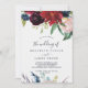 Este convite de casamento de burgundy no jardim do outono é perfeito para um casamento outono. O design floral apresenta flores cor-de-água, flores, cor-de-rosa, vermelha, marinho e borrifadas, brilhantes, e folhas verdes formadas num buquê de outono vivo.
