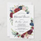 Este convite de janto de ensaio de burguesia no jardim do outono é perfeito para um ensaio de casamento outono. A design apresenta flores, flores, flores e folhas verdes, cor-de-rosa-pincelada, vermelha, marinho e borrado, cor-de-água, marcadas em forma viva de outono.