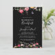 Este convite para o café da manhã de casamento de flores silvestres multicolores do jardim é perfeito para um evento moderno. O design apresenta uma variedade multicolorido de flores silvestres cor-de-rosa, pinceladas, roxas, amarelas, brancas, violetas, vermelhas e burgundy em fundo preto.