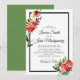 Flores cor-de-água elegantes, cor-de-rosa, em convites de casamento de estilo vintage com letras delicadas. O verso do convite é uma cor verde-folha sólida.