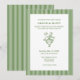 Este convite de casamento verde e branco combina elegância de eterno com charme botânico. Apresentando pinstripes verticais, uma ilustração floral detalhada da urna, e tipografia serif limpa, esta design dá o tom para uma celebração romântica e sofisticada. Perfeito para casamentos de primavera ou verão, jardins ou áreas rurais, este convite parece refinado, mas fresco. Personalize com seus detalhes de casamento e coordene-se com a suíte floral de urna de cheio para uma aparência coesa e elevada do dia.