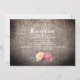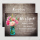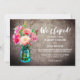 Este convite de cartão de recepção de casamento simples com jarra de pedra rústica com flores é perfeito para um casamento com tema floral country. O design apresenta um arranjo elegante de peônias cor de rosa e flores silvestres em aquarela em uma jarra de pedra azul sobre um fundo texturizado de madeira. Cartões de RSVP são vendidos separadamente.