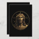 Uma espantosa visão de Jesus talhada em ouro, enfeitada com uma coroa de espinhos, colocada sobre um fundo preto, apresenta um pano de fundo sutil de crucifixo e um halo radiante, incorporando uma poderosa e sagrada expressão artística.