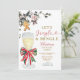 Invite guests to celebrate the season with this charming Jingle & Mingle Christmas cocktail party invitation. Featuring a festive watercolor champagne glass wrapped in a red and green bow, holly leaves, mistletoe, berries, and a cute gingerbread accent, this design brings the perfect blend of elegance and holiday cheer.