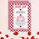 Padrão de pranchas de seda de Jockey... convite do Dia Derby para sua festa de corridas. Uma diversão na tradição que incorpora um padrão quadrado tradicional de blocos em cores brilhantes para o seu partido derby. Personalize o nome do evento, seu nome, data e hora. Adicione alguns destaques sobre seu evento, incluindo traje. Inclui um espaço para RSVP por email ou telefone. Cores: Vermelho e branco são clássicos e divertidos, mas você pode mudar as cores para qualquer coisa que se encaixe no seu tema.