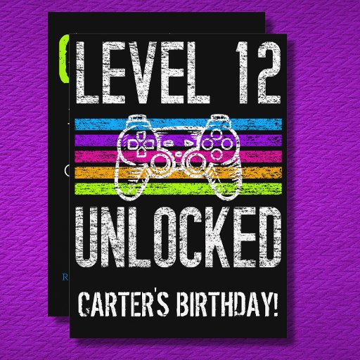 Procurando o convite perfeito para um jogador que faz 12 anos? Este design de nível 12 desbloqueado é para você. Celebração perfeita de aniversário para um jogador com este gráfico engraçado de conquista de desbloqueio. Se você estiver interessado neste gráfico por um ano de nascimento diferente de 12 anos, por favor, envie uma mensagem ao designer.