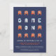 Diversão do jogo de píxeis de monstro laranja alienígena em convites de festas de videogames. Personalize com seu próprio nome e nível (idade). Arte gráfica e design por www.mylittleeden.com em deslumbrante.
