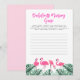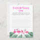 Este jogo da memória para despedida de solteira apresenta flamingos em aquarela e folhas de palmeira tropicais. Use este modelo para editar as fontes, cor da fonte e cor de fundo para atender às necessidades do seu evento. Edite a *maioria* do texto. Este jogo para despedida de solteira é perfeito para o seu evento tropical, de flamingo e inspirado no verão.