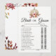 Cartão totalmente editável do jogo da Noiva ou Noivo. Despedida de Solteira | Jogo da Despedida de Solteira