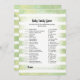 Divirta-se jogando este jogo de chá de bebê de Doces do Bebê em um fundo suave de listras de aquarela verde e branca. Coelho branco fofo nas costas com modelos criados para você.