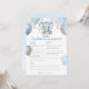 Este cartão de chá de previsão de bebê apresenta elefante de bebê azul e cinza com balões e confete. Perfeito para os seus hóspedes brincarem.