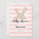Aproveite este jogo de chá de fraldas Baby Candy no fundo das listras de aquarela suave, rosa e branca. Coelho bonito, bronzeado e coelho nas costas com modelos criados para você.
