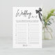 Teste a criatividade de seus convidados com este divertido e elegante jogo de chá de panela "Casamento A-Z" 🖤 🎀! Os jogadores devem criar palavras relacionadas ao casamento para cada letra do alfabeto - correndo para ver quem pode completar sua lista primeiro! 💕 apresentando um design preto minimalista chic, este jogo adiciona um toque sofisticado e na moda a qualquer chá de panela. Um quebra-gelo perfeito para convidados de todas as idades! Personalize e impressão para uma celebração memorável e divertida. ✨