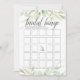 O cartão de jogo de chá de panela chic corresponde à nossa coleção de chás de panela Airy Botanical e apresenta bordas de folhagem de cor d'água em tons pastel de verde. Cartão duplo permite que você ganhe dois jogos em um só! A frente apresenta o Bingo Bridal, com o que está na sua bolsa. Personalize com a noiva para ser o nome e a data do chá.