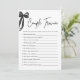 Teste o conhecimento da noiva e do noivo de seus convidados com este divertido e elegante 🎀 de jogo do Casal Negro Trivia 🖤! Os hóspedes responderão às perguntas sobre o casal, desde como se conheceram até suas coisas favoritas — quem mais acerta ganha! 💕 apresentando um design preto minimalista chic, este jogo é o na moda perfeito e a adição interativa a um chá de panela sofisticado. Personalize e impressão para uma celebração inesquecível! ✨ 💌