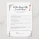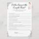Um jogo de chá de casamento para ver quem conhece melhor o casal! Este jogo é especificamente para duas noivas! Um jogo fácil e divertido para os convidados e para as noivas. Basta que as noivas completem suas respostas, e vejam quais convidados podem obter as respostas mais certas.
