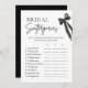 Traga diversão e risos para o seu chá de panela com este Elegante 🎀 de Escateterismo de Arcos Negra! Os convidados irão testar a sua criatividade através de palavras que correspondem a cada categoria — tudo começando com uma letra específica! ✨ Este design minimalista chic com um arco na moda preto adiciona um toque elegante a um sofisticado e moderno 💕 chá de panela. Perfeito por quebrar o gelo e manter os convidados entretidos!