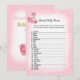 Divirta-se jogando este jogo de chuveiro de bebê Nomes de Bebês Animais em um fundo rosa suave com triângulos dourados fofos. Uma adorável mamãe flamingo bailarina e bebê no canto inferior esquerdo com flores de rosa rosa na cabeça e ao lado dos corpos. Modelos fornecidos na parte de trás.
