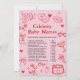 Adicione diversão e amor ao seu chá de bebê com este convite de jogo de nomes de bebês de celebridades no Dia dos Namorados desenhado à mão! Com detalhes encantadores ilustrados à mão com corações e uma vibe alegre de Dia dos Namorados, este convite de jogo é perfeito para chás de bebê no Dia dos Namorados ou celebrações com tema de amor.
