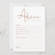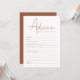 Este novo cartão de aconselhamento e desejos apresenta uma fonte bem escondido, escrita à mão, e um design moderno minimalista, com uma combinação boho terracotta e cor branca. Este design minimalista é perfeito para o seu chá de panela moderno ou clássico, chá de casais ou evento de casamento. Edite facilmente todas as cores para atender às necessidades do seu evento.