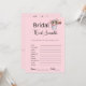 Apresentando nosso Bridal Word Scramble, uma adição charmosa e personalizável ao seu chá de panela elegante! Este jogo cativante apresenta um adorável fundo cor-de-rosa adornado com cinzas e texto preto elegantes, criando um design macio e romântico que dá o tom perfeito para a sua celebração. O cobrir frontal mostra orgulhosamente o título "Bridal Word Scramble" em uma fonte atraente, acompanhada de instruções concisas e fáceis de seguir, garantindo um início perfeito ao jogo. Mas isso não é tudo! Nossa frase imprimível de noiva vai mais longe para trazer um toque da natureza para seu dia especial. A frente é lindamente adornada com uma planta de vaso bonito, com folhas cor-de-rosa, brancas e verdes delicadas. Esta bela ilustração botânica adiciona uma pop de cor e um senso de beleza natural ao jogo, criando um elemento visual cativante que complementa o ambiente romântico. Dentro, seus hóspedes embarcarão em um desafio envolvente. Com 10 palavras cuidadosamente misturadas, elas vão desvendar e decifrar termos relacionados à noiva, experimentando uma viagem encantadora de diversão e competição amigável. O layout foi projetado com grande seriedade, oferecendo amplo espaço para os participantes escreverem seus nomes e acompanharem suas pontuações, promovendo jogos interativos e engajando-se. Para adicionar um toque pessoal, a parte traseira da impressão mostra o nome da noiva-a-ser, a data do chá e os nomes dos hosts generosos. Além disso, uma chave de resposta é incluída, garantindo pontuação conveniente e fazer o jogo sem esforço. Nossa frase imprimível de noiva é não apenas uma atividade divertida e divertida, mas também uma bela marca que captura a essência do romance e da beleza natural. Quer você esteja querendo entreter seus convidados, criar memórias queridas, ou simplesmente adicionar um toque de elegância botânica, nosso jogo personalizável é absolutamente imperativo. Com a sua design romântica, detalhes pensativos e uma ilustração botânica encantadora, a nossa tentativa imprimível de palavra noiva é certamente um destaque do seu chá inesquecível.