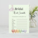Apresentando nossa Printable Bridal Word Scramble, uma adição deliciosa e personalizável ao seu chá de panela vivo e inspirado na natureza! Este jogo cativante apresenta um plano de fundo verde refrescante, adornado com cinzas elegantes e texto preto, criando um design vibrante e revigorante que complementa perfeitamente a beleza natural de sua celebração. O cobrir frontal mostra orgulhosamente o título "Bridal Word Scramble" em uma fonte atraente, acompanhada de instruções concisas e fáceis de seguir, garantindo um início perfeito ao jogo. Mas isso não é tudo! Nossa frase imprimível de noiva vai além e acima para capturar o espírito da ocasião. A frente é adorada com uma bela ilustração de um vestido de noiva no canto superior esquerdo, simbolizando o amor e a alegria em torno da viagem da noiva a ser. Além disso, uma série de corações do arco-íris divertidos adiciona um toque de comemoração e capricho próximo ao nome e ao total das linhas no fundo do jogo, criando um encantador sotaque visual que encarna a atmosfera alegre. Dentro, seus hóspedes embarcarão em um desafio envolvente. Com 10 palavras cuidadosamente misturadas, elas vão desvendar e decifrar termos relacionados à noiva, experimentando uma viagem encantadora de diversão e competição amigável. O layout foi projetado com grande seriedade, oferecendo amplo espaço para os participantes escreverem seus nomes e acompanharem suas pontuações, promovendo jogos interativos e engajando-se. Para adicionar um toque pessoal, a parte traseira da impressão mostra o nome da noiva-a-ser, a data do chá e os nomes dos hosts generosos. Além disso, uma chave de resposta é incluída, garantindo pontuação conveniente e fazer o jogo sem esforço. Nossa frase imprimível de noiva é não apenas uma atividade divertida e interativa, mas também uma bela marca que captura a essência de sua celebração inspirada na natureza. Quer você esteja querendo entreter seus convidados, criar memórias queridas, ou simplesmente adicionar um toque de frescura, nosso jogo personalizável é absolutamente imperativo. Com os seus designs vivos, detalhes pensativos e ilustrações deliciosas, a nossa tentativa de impressão de palavras noivas é certamente um destaque do seu chá inesquecível.