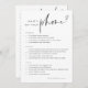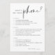 A placa de jogo de chá de panela de lado duplo apresenta uma inscrição minimalista moderna em um fundo branco para coordenar com qualquer tema. Escolha impressão profissional ou selecione download instantâneo para uma opção digital imprimível! Side 1 apresenta "O que está no seu telefone?" com perguntas sobre coisas nos telefones dos hóspedes, com três valores de pontos diferentes. Personalize os itens, se desejado, ou use a ferramenta design para alterar as cores para corresponder ao tema do chá de panela. O lado 2 apresenta "como você conhece a noiva?" com perguntas triviais divertidas para responder.