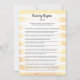 Aproveite este jogo de chá de fraldas do Nursery Rhymes Quiz no fundo das listras de aquarela suaves, amarelas e brancas. Coelho bonito, branco e coelho nas costas com modelos criados para você.